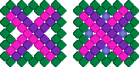 As with any piece of fabric, each piece of knotwork has two sides. On the "color face", all the knots look the same, letting the pattern of colors show through clearly. On the "texture face", the shape of each knot is determined by how it is tied. For most of our pieces, only one face is intended to be seen. With "Hello, Sailor" (far left), the tying method results in an unpatterned texture face. With "The Jewels In The Lotus" (near left), all the knots are the same color, resulting in a uniform color face. |