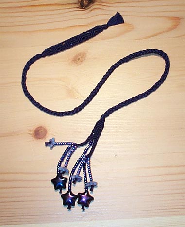 Single-tailed bookmark in cotton embroidery floss ("Cosmos" pattern)
