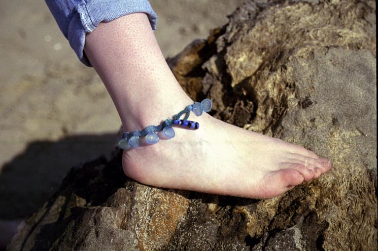 Anklet in cotton embroidery floss ("The Ocean Blue" pattern,